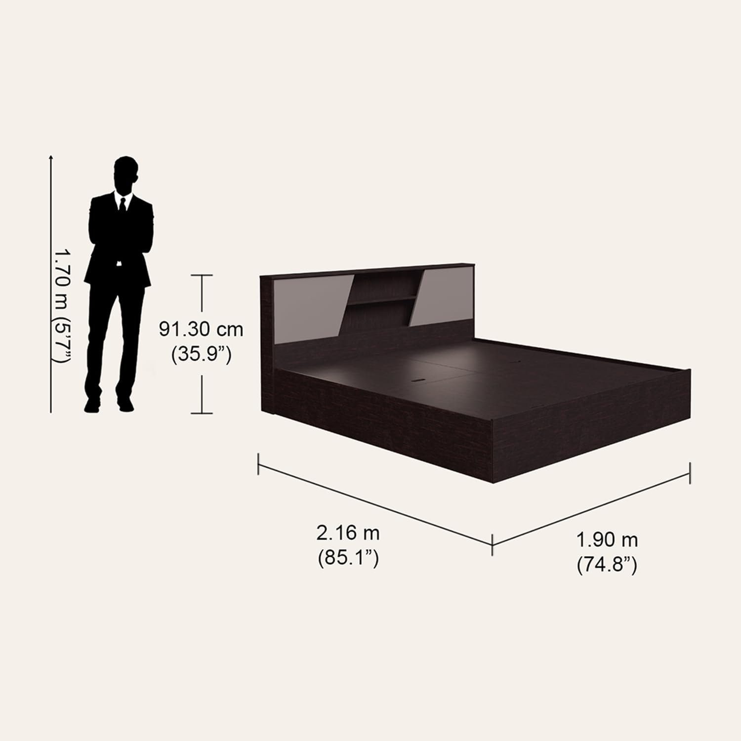 Dimensions~ 216 cm L × 187 cm W × 91 cm H Amazon India+2Pepperfry+2