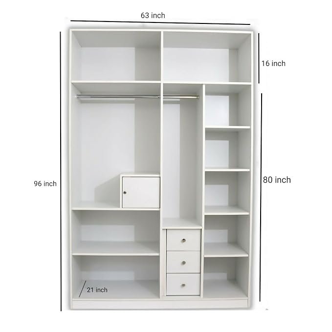 Spacious Interiors: Lots of shelves inside for folded clothes; generous locker/hanging sections for coats, dresses or shirts; loft for blankets, etc. Designed to handle heavy loads without losing shape due to thick, high grade boards. sarvadnyainteriors.com
